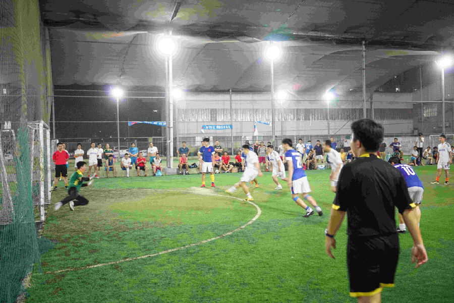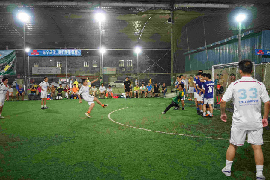 下半場(chǎng)開(kāi)始,盡管大比分落后,市建管處憑借老道的經(jīng)驗(yàn)不急不燥控制著場(chǎng)上節(jié)奏,冷不丁連入兩球,6:4逼近比分。南寧品正籍著年輕、體力好,頻繁穿插跑動(dòng)封堵出球線路,由馮乙梃右路遠(yuǎn)射,再次以7:4拉開(kāi)差距。隨著時(shí)間的流逝,建管處也開(kāi)始緊張起來(lái),南寧品正也略顯疲憊,在一次暫停后,建管處隨即加強(qiáng)攻勢(shì),第70分鐘將比分追成7:5,看到了追平的希望。離終場(chǎng)還剩10分鐘,建管處壓著南寧品正狂攻,第78分鐘,南寧品正守門員飛哥撲救脫手,第二反應(yīng)再補(bǔ)犯規(guī),點(diǎn)球!比賽來(lái)到了最高潮!除品正的啦啦隊(duì)外,全場(chǎng)球迷都在為落后的建管處加油!點(diǎn)球發(fā)出…守門員撲出(要知道品正的守門員已是58歲高齡啊,這反應(yīng))…頭球補(bǔ)射入網(wǎng)!一切都在電光火石之間發(fā)生,全場(chǎng)歡聲雷動(dòng)!比分追至7:6。建管處隊(duì)員都在激情長(zhǎng)嘯、相互擊掌鼓勵(lì)。南寧品正沉著冷靜,中圈發(fā)球,趁建管處仍沉浸點(diǎn)球補(bǔ)進(jìn)的喜悅中立足未穩(wěn),由藍(lán)劍平帶球至左路突然起腳勁射,球砸中右立柱反彈入網(wǎng)!近處裁判果斷鳴哨手指中圈判進(jìn)球!另一名裁判仍在猶豫,跑過(guò)去詢問(wèn),才一致認(rèn)定進(jìn)球!離球門稍遠(yuǎn)的建管處隊(duì)員本有疑問(wèn),看到守門員和后衛(wèi)隊(duì)員遺憾的抱頭,也服從了判罰。從進(jìn)球到丟球這不到半分鐘的巨大落差,讓建管處的隊(duì)員們有些失落,時(shí)間也所剩無(wú)幾,最終定格在8:6。南寧品正驚險(xiǎn)取勝。