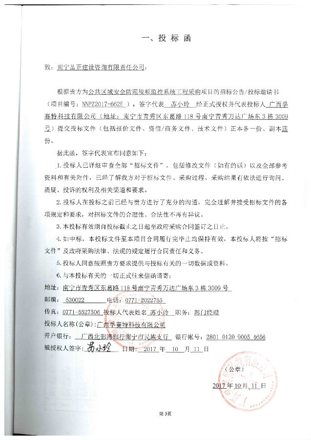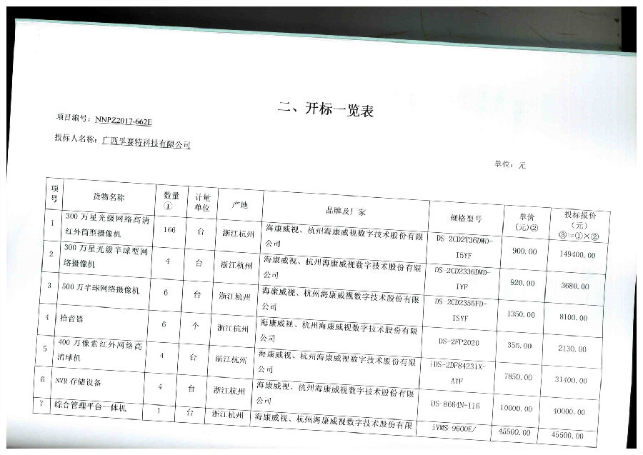 一、采購(gòu)項(xiàng)目名稱及編號(hào):公共區(qū)域安全防范視頻監(jiān)控系統(tǒng)工程采購(gòu)(NNPZ2017-662E)