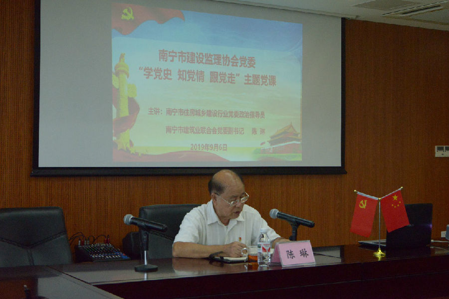 為扎實(shí)推進(jìn)“不忘初心 牢記使命”主題教育活動,同時紀(jì)念中國共產(chǎn)黨成立98周年,2019年9月6日上午,我公司黨員職工參加了南寧市建設(shè)監(jiān)理協(xié)會黨委組織開展的“學(xué)黨史 知黨情 跟黨走”主題黨課活動,此次黨課邀請到南寧市住房城鄉(xiāng)建設(shè)行業(yè)黨委政治指導(dǎo)員、兼南寧市建筑聯(lián)合會黨委副書記陳琳同志給全體黨員講述中國共產(chǎn)黨的奮斗歷程,回顧黨史,不忘初心。