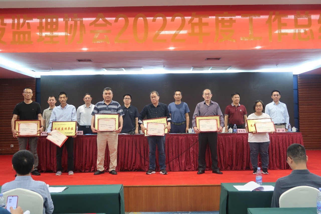 在2022年度南寧市建設(shè)監(jiān)理協(xié)會(huì)表彰儀式上,公司行政部主任代表南寧品正上臺(tái)領(lǐng)取南寧市建設(shè)監(jiān)理協(xié)會(huì)頒發(fā)的“2022年度誠(chéng)信企業(yè)”和“2022年度南寧市先進(jìn)監(jiān)理單位”榮譽(yù)證書。南寧品正總監(jiān)理工程師姚思清、王騰龍、曾振華、張騰、盧國(guó)敏、曾鉦驊、林碧婷等7人榮獲2022年度“南寧市優(yōu)秀總監(jiān)理工程師”稱號(hào),萬立名、劉建琨、莫志良、趙春燕、曹慶、盧軍、楊歡瑜等7人榮獲2022年度“南寧市優(yōu)秀監(jiān)理工程師”稱號(hào),并受到表彰。