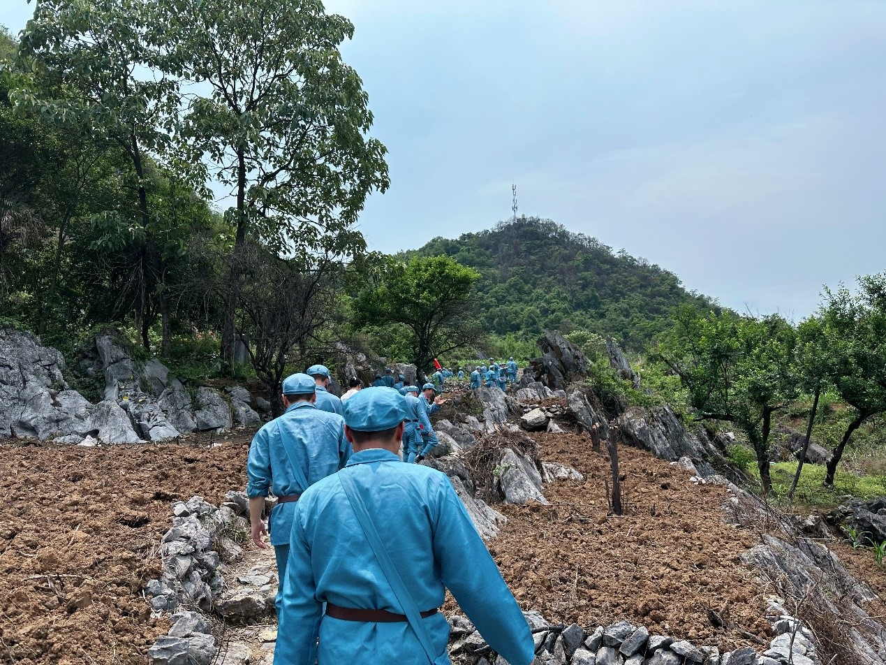 在灌陽(yáng)參觀湘江戰(zhàn)役新圩阻擊戰(zhàn)酒海井紅軍紀(jì)念園,黨員同志們懷著無(wú)比沉重的和崇敬的心情,聆聽(tīng)了當(dāng)年紅軍血灑湘江、氣壯山河的悲壯歷史。隨后廣大黨員干部,通過(guò)“穿一套紅軍服,走一段紅軍路”跟隨革命腳步,重走紅軍長(zhǎng)征路,沿著革命先輩走過(guò)的崎嶇道路,一步一腳印,體會(huì)到了湘江戰(zhàn)役戰(zhàn)士的艱辛不易,一路追尋英雄將士們的紅色長(zhǎng)征足跡,重溫那段難忘的歲月,在傳承紅色血脈的熏陶洗禮中,進(jìn)一步傳承紅色基因,賡續(xù)紅色血脈。