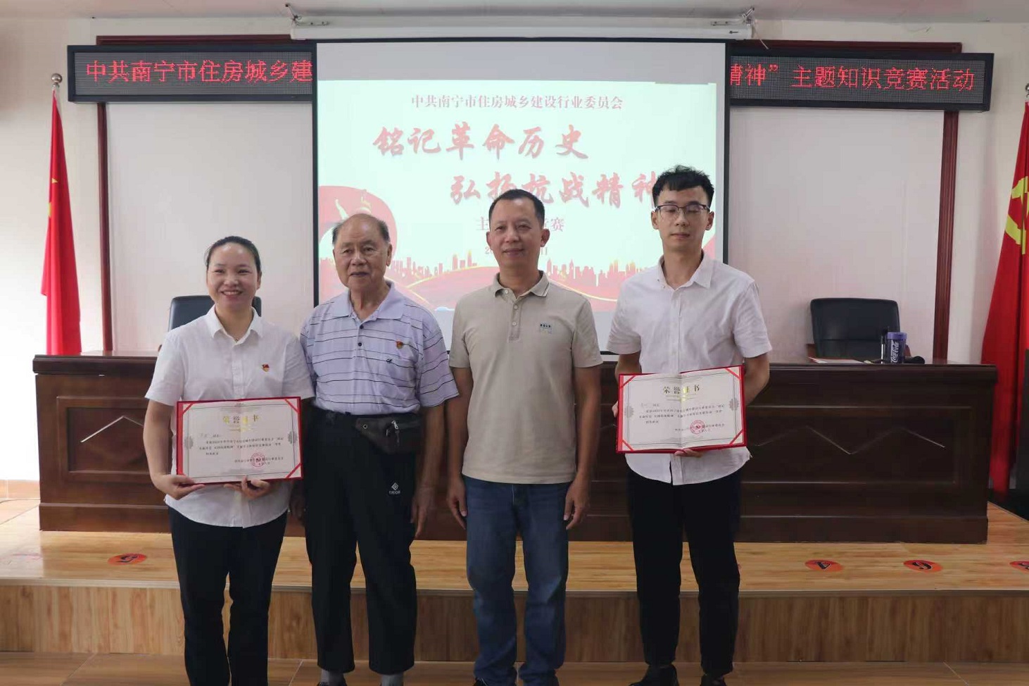 為紀(jì)念中國人民抗日戰(zhàn)爭暨世界反法西斯戰(zhàn)爭勝利80周年,深切緬懷革命先烈,大力弘揚(yáng)偉大抗戰(zhàn)精神和愛國主義傳統(tǒng),市住建行業(yè)黨委嚴(yán)格遵照黨中央要求,于2025年8月28日上午在黨員活動中心舉辦“銘記革命歷史 弘揚(yáng)抗戰(zhàn)精神”主題知識競賽活動。我公司黨支部派優(yōu)秀黨員盧波和入黨積極分子肖欣積極參加活動。