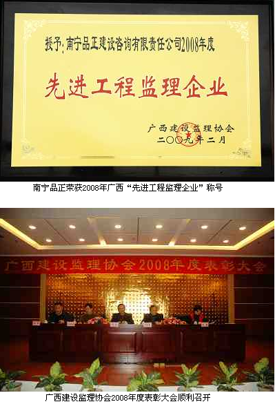 為推動(dòng)我區(qū)建設(shè)監(jiān)理行業(yè)的快速發(fā)展,引導(dǎo)我區(qū)企業(yè)創(chuàng)建“名牌監(jiān)理企業(yè)”,激發(fā)監(jiān)理人員的愛(ài)崗敬業(yè)精神,在全區(qū)樹(shù)立起建設(shè)監(jiān)理行業(yè)的良好形象,近日,廣西建設(shè)監(jiān)理協(xié)會(huì)在南寧召開(kāi)了“廣西建設(shè)監(jiān)理協(xié)會(huì)2008年度表彰大會(huì)”。大會(huì)授予南寧品正建設(shè)咨詢(xún)有限責(zé)任公司等16家單位“廣西先進(jìn)工程監(jiān)理企業(yè)”稱(chēng)號(hào),授予南寧品正曾振華、黃燕玲和陳秋等36人“廣西優(yōu)秀總監(jiān)理工程師”稱(chēng)號(hào),授予南寧品正姚思清、劉豫黔和宋熒冬等40人“廣西優(yōu)秀監(jiān)理工程師”稱(chēng)號(hào)。大會(huì)號(hào)召受到表彰的先進(jìn)單位和優(yōu)秀個(gè)人,戒驕戒躁、再接再厲,開(kāi)拓進(jìn)取,再創(chuàng)佳績(jī),為全區(qū)建設(shè)監(jiān)理事業(yè)的發(fā)展做出更大的貢獻(xiàn)。
